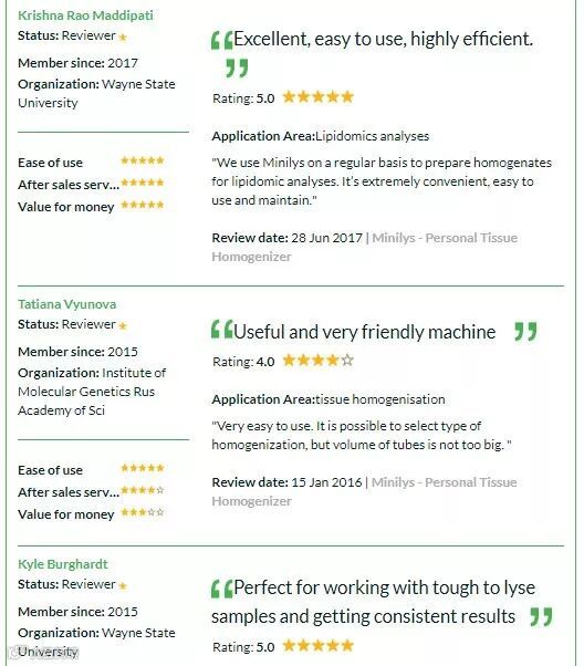 “非常适合难以裂解的样品并获得一致性的结果。对于低通量应用来说,性价比极高。与其他同类产品相比相比,更容易操作。”