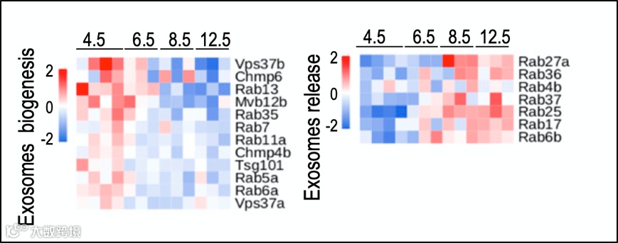 图1 胚胎滞育进程中外泌体生成和释放相关基因表达情况