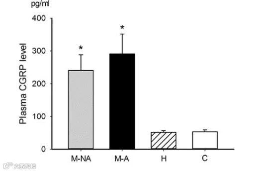 本研究中学者通过检测抗偏头疼药物和血浆中CGRP水平来研究CGRP是否为小儿偏头疼的生物标记物。
