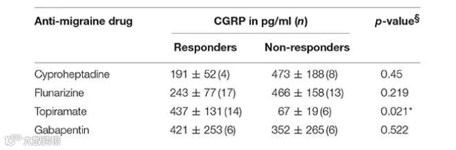 有些药物服用之后CGRP含量明显降低,Topiramate服用之后CGRP却明显升高。