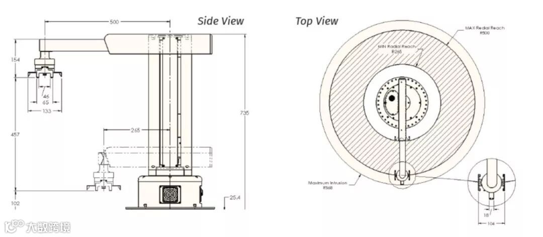 >比普通机械臂扩大40%的工作范围