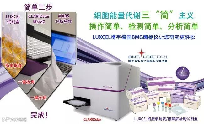 爱尔兰LUXCEL试剂厂商与德国BMG LABTECH酶标仪厂商从去年开始携手合作,共同研发推动多指标细胞能量代谢研究。LUXCEL细胞能量代谢试剂搭配德国BMG LABTECH的酶标仪和其强大的数据处理软件MARS,仅需简单的3步操作,您就可以轻松地获得细胞能量代谢分析数据结果!让繁琐的实验操作和数据处理从此变浮云!