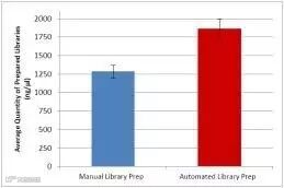 图2:自动化和人工建库的到的平均质量分别是1864 ng 和1284 ng