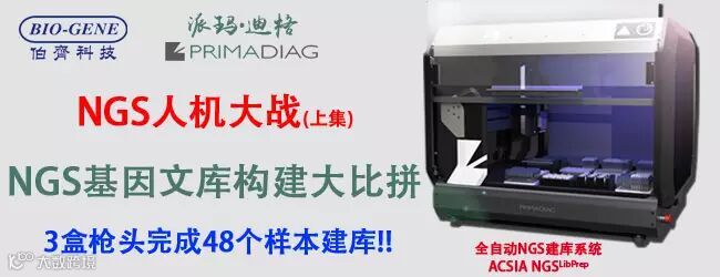 随着测序技术的发展,科学界也开始越来越多地应用测序技术来解决生物学问题。在过去的十年里,新一代测序技术—第二代测序(NGS)迅猛发展,越来越多测序实验室的采用NGS技术作为测序主要手段。而且NGS高通量的特点,使之成为研究DNA和RNA的主要工具。 在NGS过程中,构建基因文库是整个测序进程中第一个步骤,也是最为关键步骤,基因文库的质量直接影响后续的测序工作。虽然二代测序技术发展迅速,但是基因文库的构建仍然是一项十分耗费时间以及重复性高的工作,需要熟练的科研技术人员在整个操作过程中保持需高度注意力,花费5个小时甚至更多的时间才能完成建库工作。 为了减轻测序工作人员负担,解放双手,法国罗氏诊断公司与派玛·迪格(PrimaDiag)公司宣布合作,开发了ACSIA NGSLibPrep自动化移液工作站,为罗氏提供的建库产品提供自动化解决方案,将繁琐冗长的建库工作自动化。 派玛·迪格公司成立于法国,专注于科学和医学生物领域,针对生物学特别是分子生物学领域的各种需要的自动化操作工作,创新研制简单但强大的自动化平台。 ACSIA NGSLibPrep全自动建库系统移液精准,重复性高,在建库过程中避免了任何人为误差,从而提高文库的质量。罗氏诊断公司提供建库用的KAPA建库试剂盒在这个平台上能实现完全自动化,不需要任何人工参与。所以使用ACSIA NGSLibPrep进行建库工作是一种非常经济合算的方法。Kapa Biosystems和罗氏NimbleGen的建库操作步骤都在ACSIA NGSLibPrep自动化平台上进行了步骤优化,预设了运行程序,因此,使用ACSIA NGSLibPrep自动化平台构建基因文库,只需要打开预设的方法,输入样本数,点击OK就可以了。人工完成建库长达5小时的工作,用ACSIA平台只需要人工操作15分钟,其他的都由ACSIA平台代替完成。 ACSIA NGSLibPrep平台使用了派玛.迪格公司的创新专利技术APIM(感应磁化吸引技术),根据需求通电或断电产生磁力去极化,无需转移微孔板就可以对磁珠进行吸引和释放,实现磁珠零残留。此外,ACSIA NGSLibPrep全自动建库系统上可以配置市场上供应的任何类型的微孔板和深孔板。所有的液体参数经过精心优化,系统设有专利的SMT智能省枪头系统,可在没有交叉污染的情况下重复使用枪头。这使得建库所使用的实际试剂消耗达到最小,而优化的操作步骤也允许使用最少的枪头数来完成整个建库工作,大大节约试剂和耗材成本。在ACSIA NGSLibPrep平台上构建48个DNA文库仅需要3盒枪头,而人工操作使用的枪头数会达到14盒之多;处理每个样品平均使用的枪头数从人工完成所需要的28个降到了6个,大大节省了枪头成本。比较ACSIA和人工建立的文库质量,使用ACSIA处理样本,得到的样本浓度更加均一,变异系数小。(见图1) 除了罗氏和Kapa Biosystems试剂,派玛.廸格已先后跟多个NGS试剂厂家合作,并进行优化,包括Illumina、NEB、安捷伦等。所以,ACSIA NGSLibPrep全自动建库系统已内置各试剂厂家的优化实验程序,用户只需在平台上放好试剂,打开相对应的试剂程序,需入样本数量,系统便会全自动地把工作完成。真正轻松进行NGS实验!! |