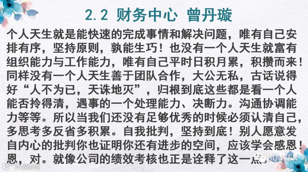 ,在碧婷,需要踏踏实实努力认真干活的小伙伴,而不是拥护个人主义的人,公司不养闲人,当然公司也会提拔有实力有能力的人,所以,小伙伴们,都努力成为一个有能力有责任感的人吧!