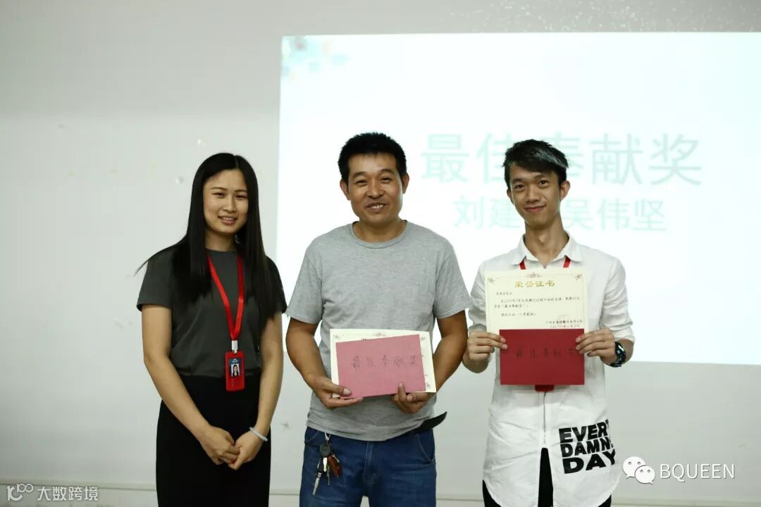 恭喜刘建、吴伟坚2位同事,获得最具奉献奖,在搬仓前后都默默奉献汗水和劳动力,加班到夜晚凌晨都是经常的事,这个奖你们值得拥有