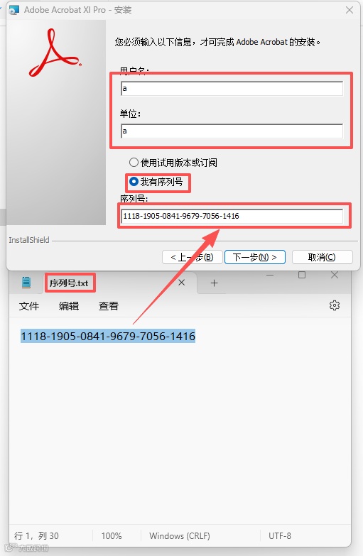 这里用户名和单位可以随便填写,