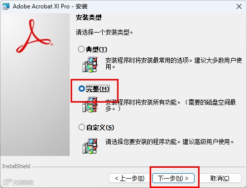 这里选完整安装-接着下一步