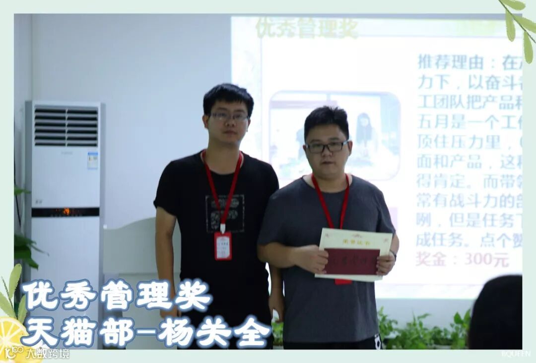 获得2019年5月优秀管理奖的小伙伴为:天猫部-杨关全。