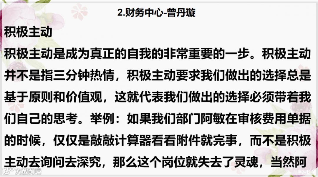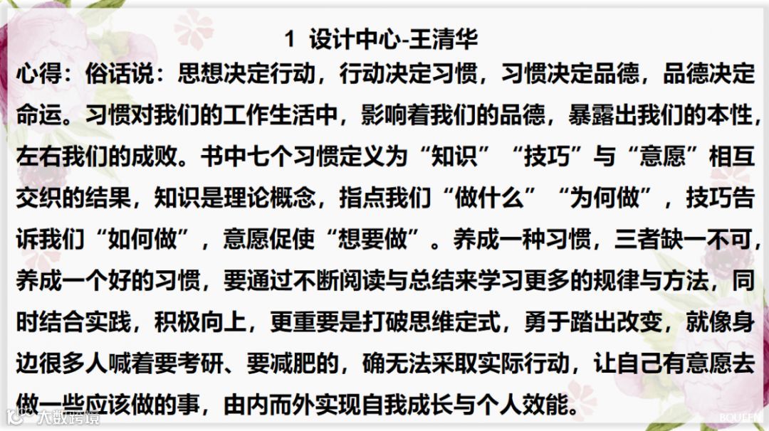 本期进行心得分享的同事较少,稀少就代表着精华,一起来品读一下吧!
