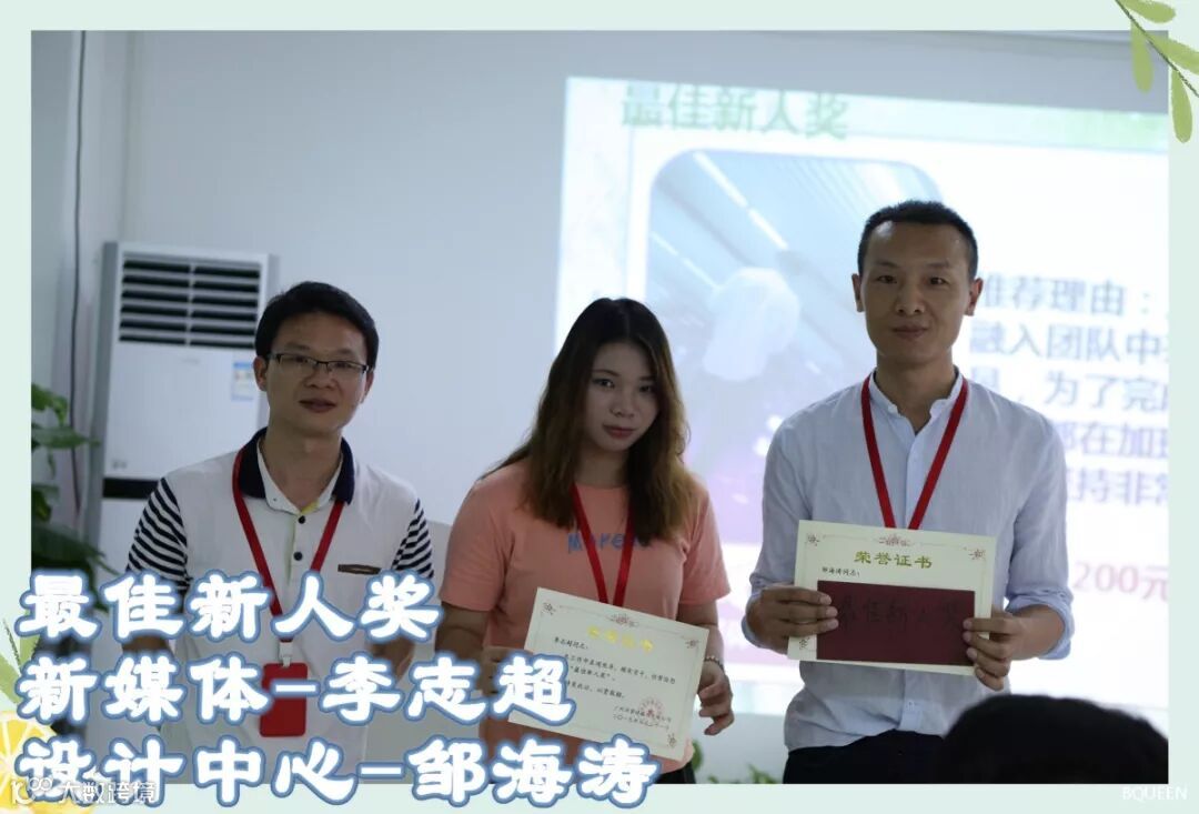 获得2019年5月份最佳新人奖的小伙伴为:新媒体中心-李志超,设计中心-邹海涛。