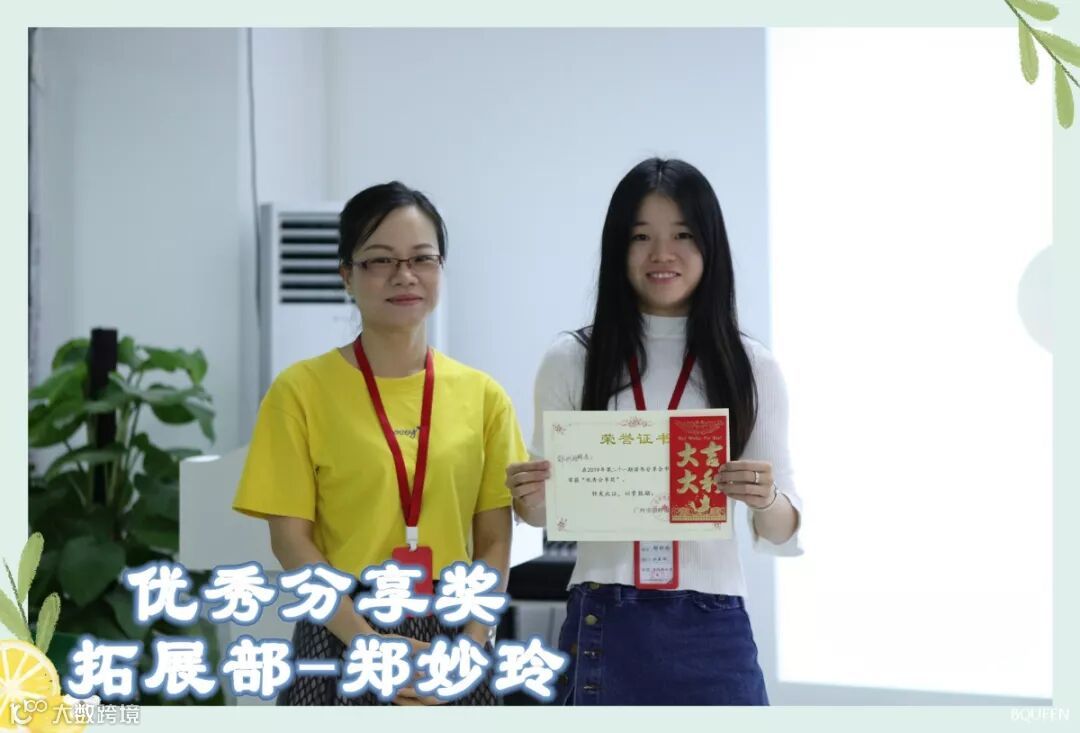 经过一轮讨论,发表了各自的见解,获得2019年第21期“优秀分享奖”的小伙伴是“拓展部-郑妙玲”。