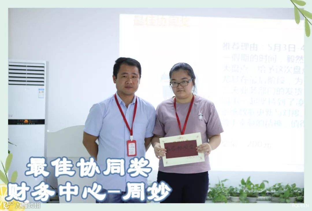 获得2019年5月最佳协同奖的小伙伴是:财务中心-周妙。