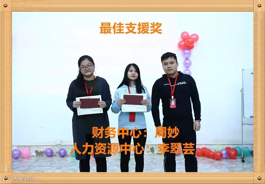 在双十二活动期间,其中有两位小伙伴在广州最冷的气温下支援了2天!这种精神,值得我们去嘉奖!经公司研究决定,特授予“人力资源中心-李翠芸”、“财务中心-周妙”两位同志“最佳支援奖”。