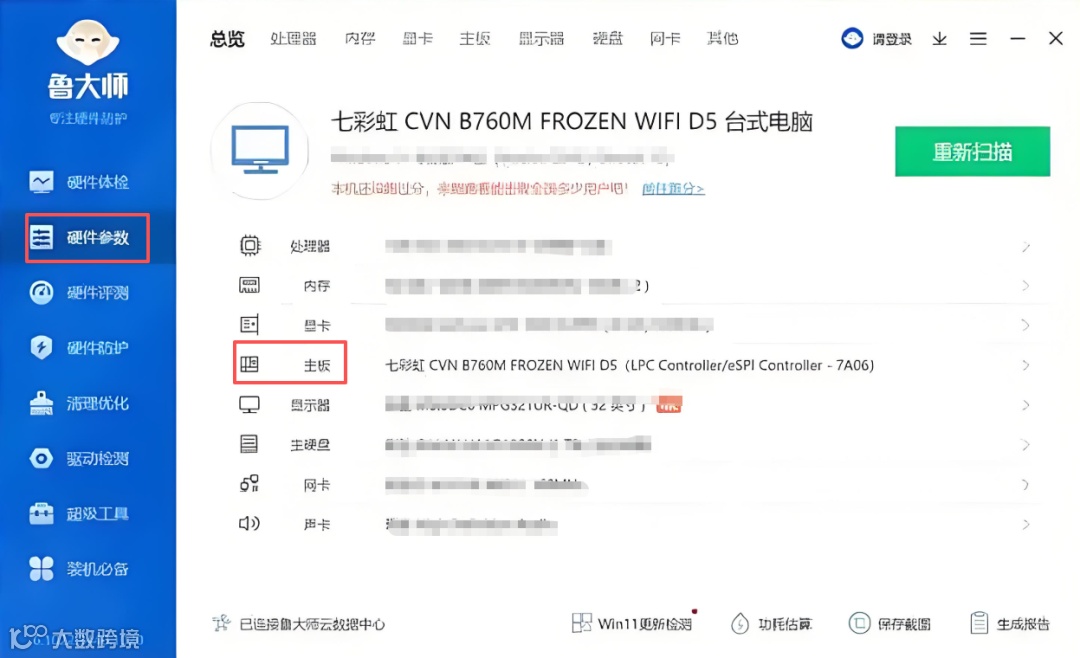 使用鲁大师软件查询,硬件参数就可以直观的看到了。