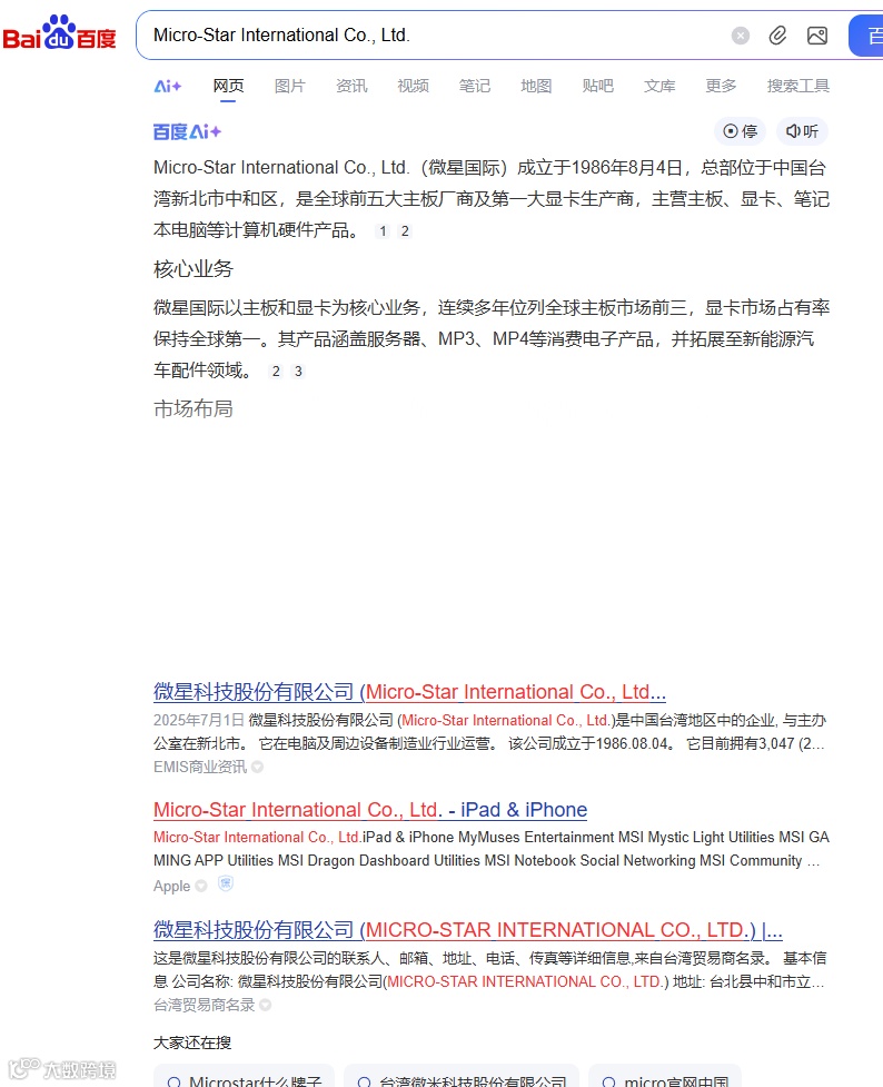 百度搜索这段英文,就能查出来对应的中文品牌名称;(这里举例我的主板缩写是msi,查到了也就是微星主板)。