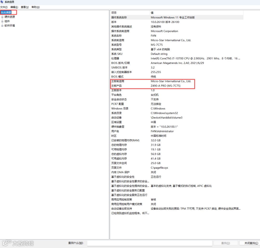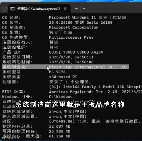 左上角点系统摘要,框选的这里主板制造商就是主板品牌的英文名称;