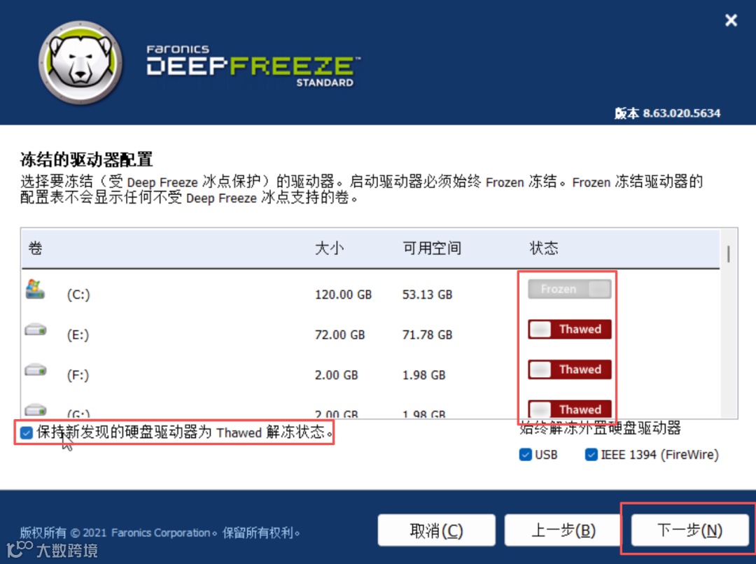 冰冻状态:日常使用的默认状态,系统受全面保护,适合普通用户或公共场景;