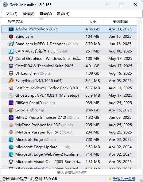 卸载某压缩软件、某大师等捆绑推广多的程序;