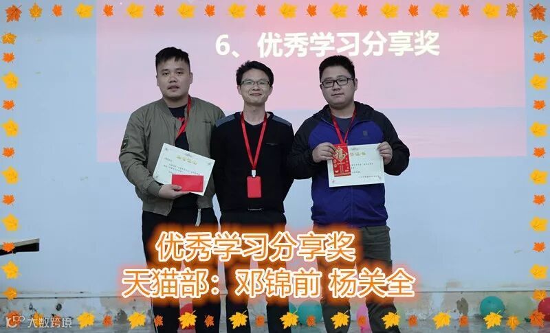 经过一轮的激烈角逐,获得第41期优秀学习分享奖的是天猫部 邓锦前 杨关全,本期的颁奖嘉宾温总还在后台调侃如果是他,自己给自己颁奖就搞笑啦~幸好老天听到了呼声,拯救了车祸现场~~