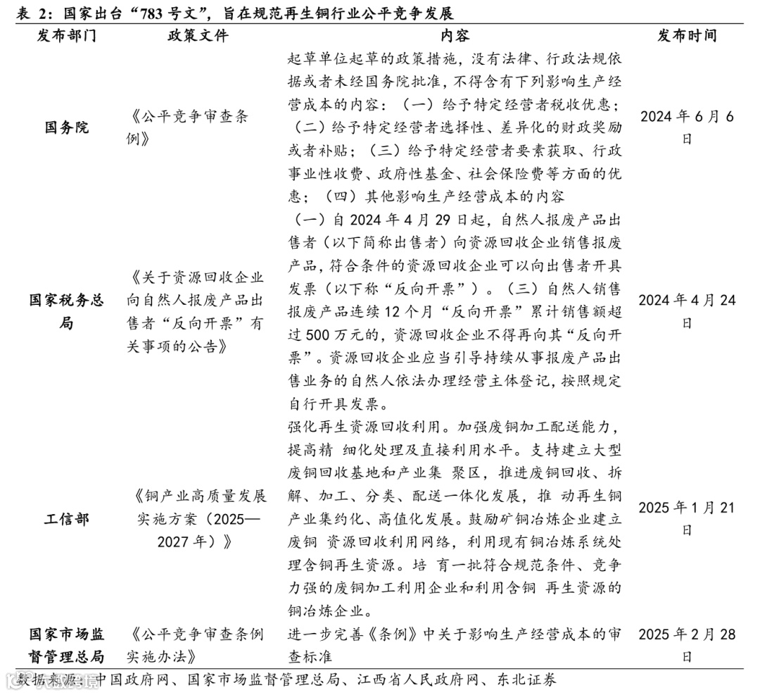 2.1.3. 国家出台反内卷政策,公司作为国内再生铜利用量最大的公司之一,有望充分受益