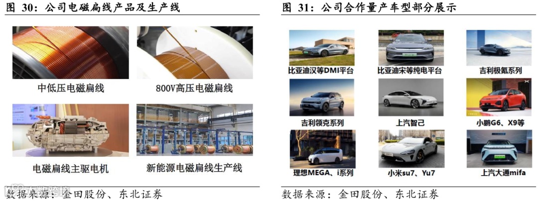 电磁线:电磁线作为现代工业基础性产品,广泛应用于电力、家电、通讯、电子、汽车、风电装备、航空航天等多个行业,被誉为电机、电器工业产品的“心脏”。根据绝缘层材料划分,可以将电磁线分为漆包线、绕包线和无机绝缘线。目前,漆包线在电磁线中占主导地位。同时,公司持续扩大高压电磁扁线行业技术领先优势,战略性培育PEEK材料产品。公司积极与世界一流主机厂商及电机供应商开展新能源电磁扁线项目的深度合作。2025年H1,公司新能源电磁扁线开发项目已实现量产100余个,新增新能源驱动电机定点项目 42 项,其中 800V 高压平台新增定点 23 项,且已实现多项批量供货,2025年上半年公司 800V 高压电磁扁线出货量同比增长 137%,高压扁线占比提升至42%。公司1000V驱动电机用扁线产品已成为新能源汽车领域“兆瓦闪充”技术支撑材料的业内标杆,同时有序推进1200V 驱动电机扁线的客户相关认证。PEEK 材料产品方面,公司依托高压场景高端技术解决方案,协同欧洲知名材料供应商突破国际专利壁垒,实现头部高端新能源车企的批量供货,加速推进关键材料进口替代进程。