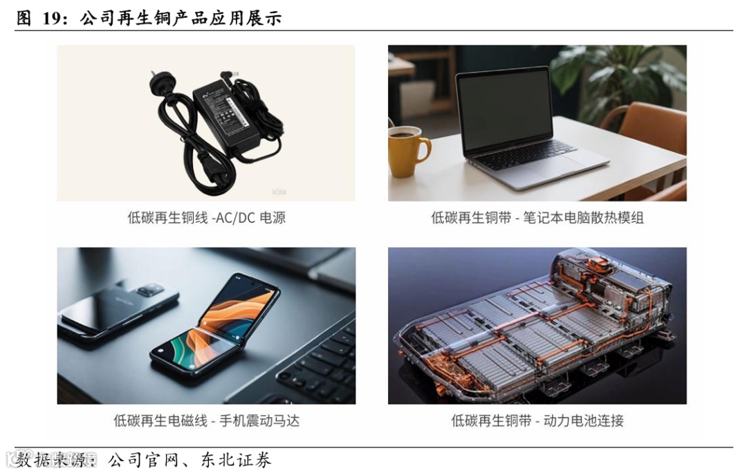 公司深耕绿色低碳再生铜产业,现已成为国内再生铜利用量最大、综合利用率最高的企业之一,也是全球业内为数不多的可实现再生铜回收、提纯、深加工全产业链闭环的公司,更好地满足下游行业全球头部客户群体的绿色低碳发展要求。公司自主研发的低碳再生铜产品大幅降低产品碳排放,可以为产业链下游客户提供优质、完整的一站式铜材绿色方案。公司系统推进碳管理体系建设,强化知识赋能和人员培养,深化绿色产品开发和生产节能减碳。同时,公司注重新产品绿色认证及大客户审核,积极推进SCS翠鸟再生成分认证、GRS全球回收标准认证、LCA碳足迹认证、RBA责任商业联盟认证等并取得一系列成果。2025年H1,公司绿色高端低碳再生铜产品销量同比增长61%。产品矩阵已覆盖铜带、铜线、电磁线、铜管、铜排、铜棒等,并应用于高端消费电子、汽车工业、电力电气等领域,具体包括笔记本电脑散热模组、手机震动马达、新能源汽车动力电池连接、AC/DC电源等场景中,在多家世界知名客户产品中实现量产,形成以“绿色低碳再生铜产品”为代表的业绩驱动新要素。