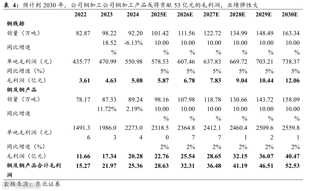 2.1.4.公司铜加工产品业绩弹性测算:预计到2030年或将贡献53亿元的毛利润