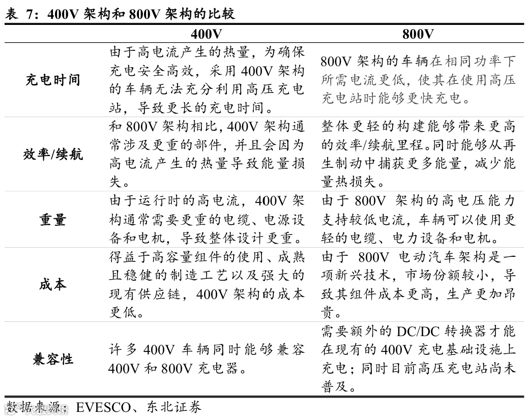 随着新能源汽车的市场渗透率逐渐增加,为了更好地取代传统燃油汽车和解决“续航焦虑”问题,新一代电动汽车需要更长的续航里程、更快的充电能力和更高的功率输出,而为了解决上述问题,电动汽车电池架构需要更高的电压。在此背景下,800V高压架构及扁铜线驱动电机技术正在成为行业焦点。相较于传统的400V架构,800V架构具有更高的效率、更快的充电时间和更好的车辆性能等显著优势。