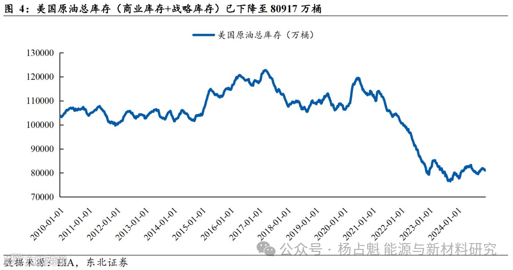 (2)OPEC+:2024年12月5日召开的OPEC+部长级会议将第二轮自愿性减产的复产时间推迟至2025年4月份,这意味着2025Q1原油在供给端或几无利空,在12月5日部长级会议宣告OPEC+也不会冲击Q1原油供给后,油价支撑较为明显;