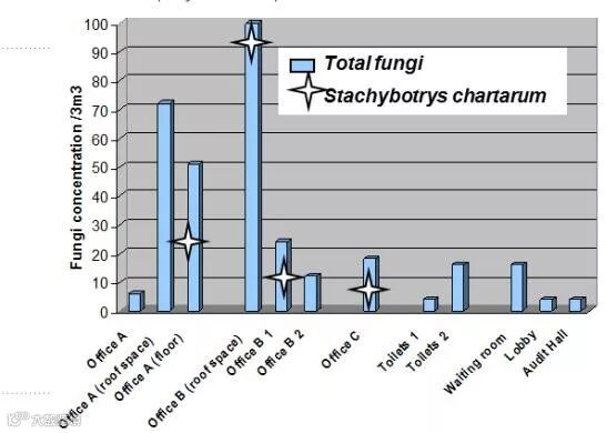 确认葡萄穗霉属的存在至关重要,因为它会产生一些霉菌毒素,会引起人类霉菌中毒,并引起室内空气综合征,有一些不良反应,例如员工投诉的恶心、鼻出血、头晕、呼吸困难等。