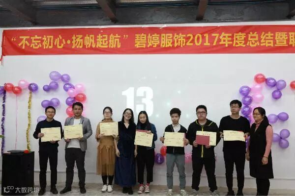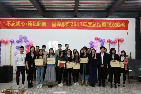 广州市碧婷服饰有限公司于2018年1月19日14点在会议室召开2017年度总结大会,全体员工参加此次会议。