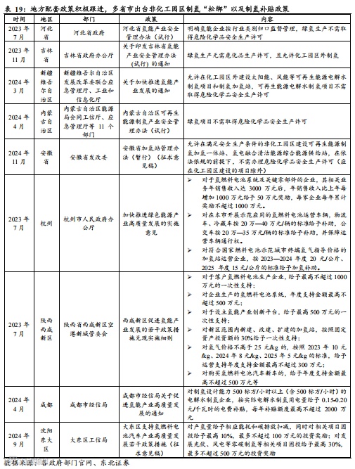 同时,地方配套政策积极跟进,多省市出台政策推动非化工园区制氢“松绑”,以及出台相关制氢补贴政策。