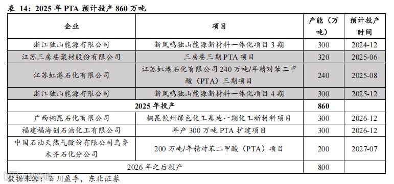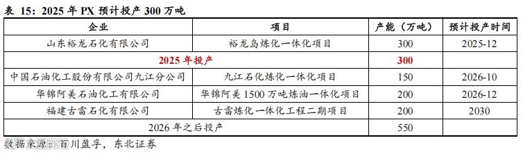 供给端来看,PX 2024年国内无新增产能,2025年投产或仅有300万吨。