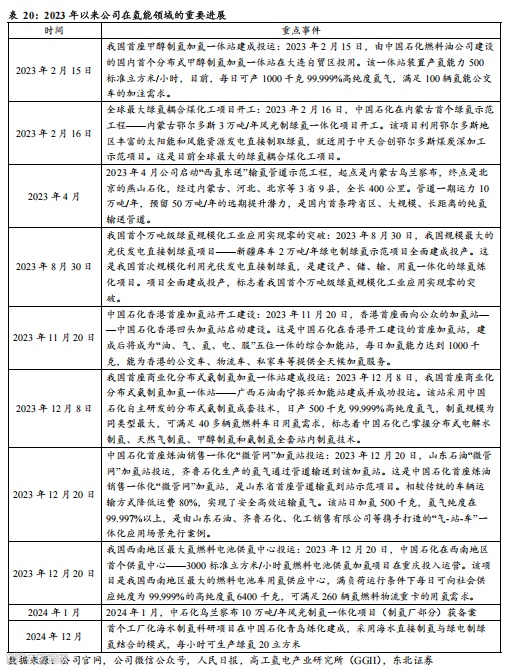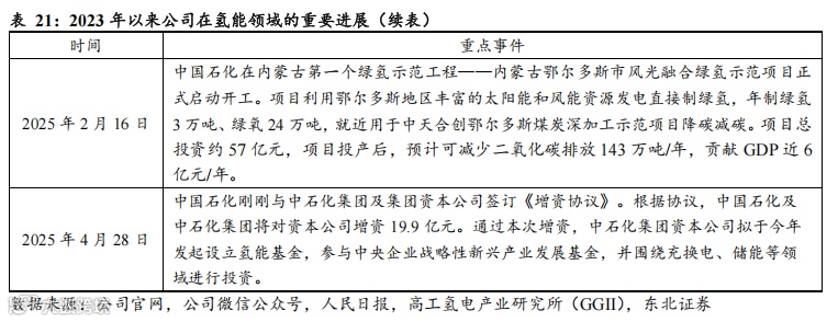 (1)布局氢能全产业链,在制氢、储氢、加氢、氢能技术等环节均取得突破。