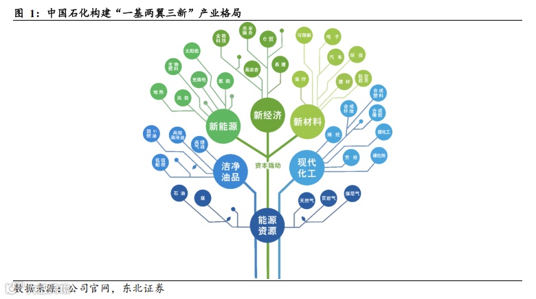 全球领先的炼化销一体化龙头,构建“一基两翼三新”产业格局。中国石化业务涵盖上游勘探及开发、中游炼油和化工和下游营销及分销,是全球领先的炼化销一体化龙头。公司着力构建以能源资源为基础,以洁净油品和现代化工为两翼,以新能源、新经济、新材料为重要增长点的“一基两翼三新”发展格局,实现更高质量、更有效益的发展。