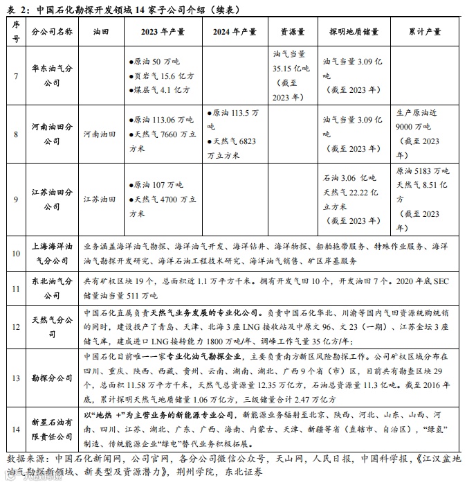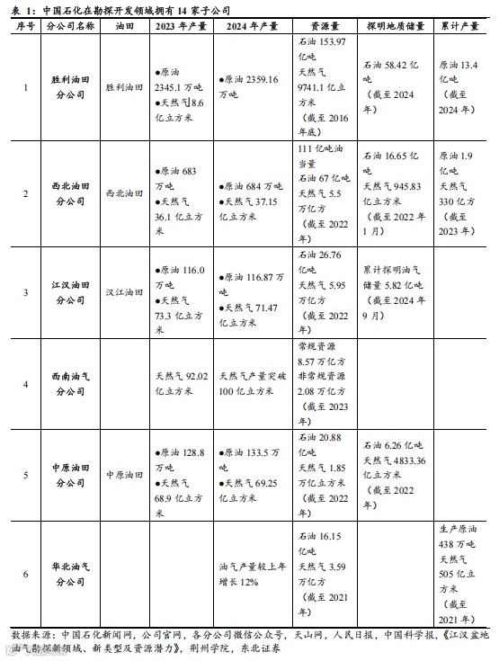国内方面,公司在上游油气勘探开发领域拥有14家子公司,包括胜利油田分公司、中原油田分公司、河南油田分公司、江苏油田分公司、江汉油田分公司、西北油田分公司、西南油气分公司、华北分公司、上海海洋油气分公司等;