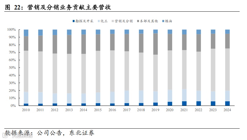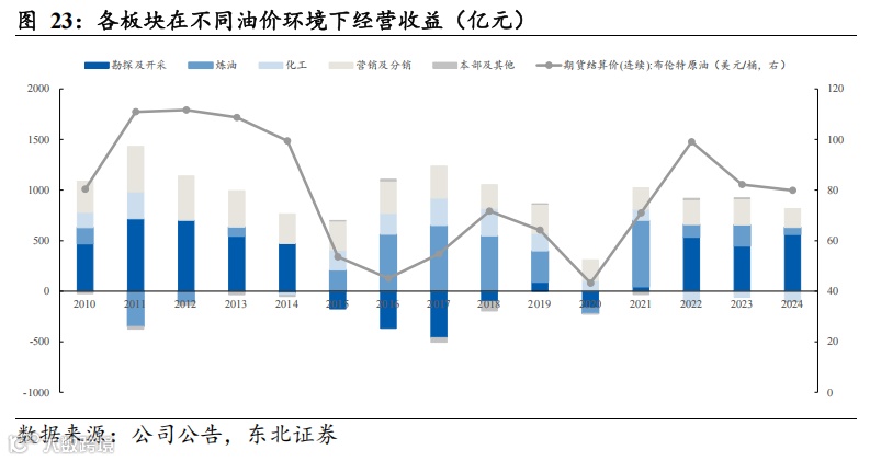 分板块来看,营销及分销业务贡献主要营收,各板块在不同油价环境下盈利水平有所分化。