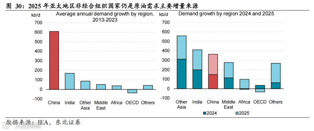 (3)南美已成为全球原油供应增长的主要来源。需求端来看,全球原油需求仍保持增长态势,其中Non-OECD国家等新兴市场原油需求、化工用油需求或是后续原油需求的主要增量来源。