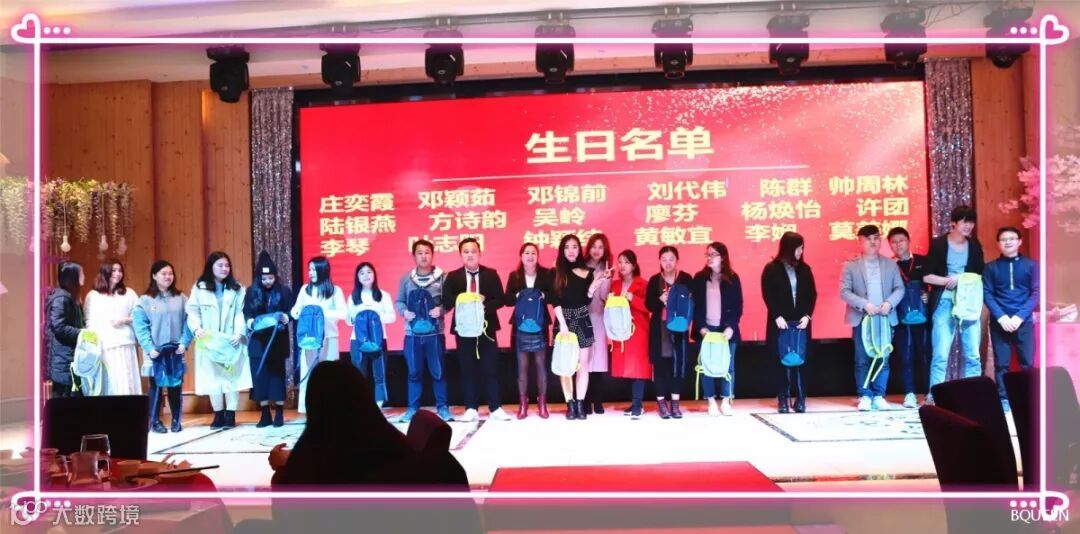 颁完了抽奖奖品,本次年会也对1月、2月生日的寿星们颁发生日礼物,在生日歌想起的刹那,现场齐齐大喊:生日快乐!祝愿寿星们年年有今日岁岁有今朝!