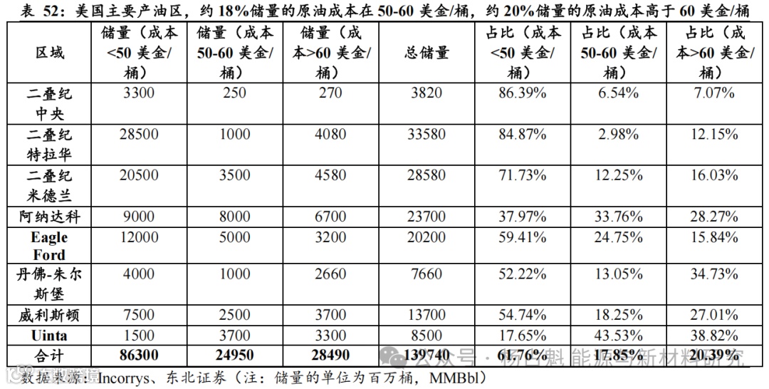 美国主要产油区,约20%储量的原油成本高于60美金/桶