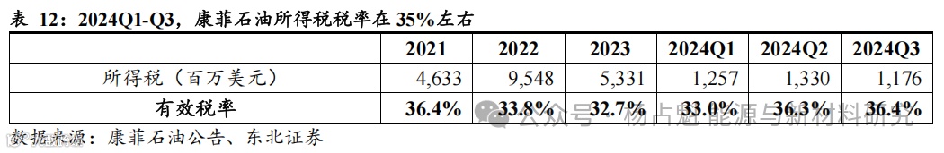 受海外业务影响,康菲石油所得税率在35%左右,高于美国法定税率21%。