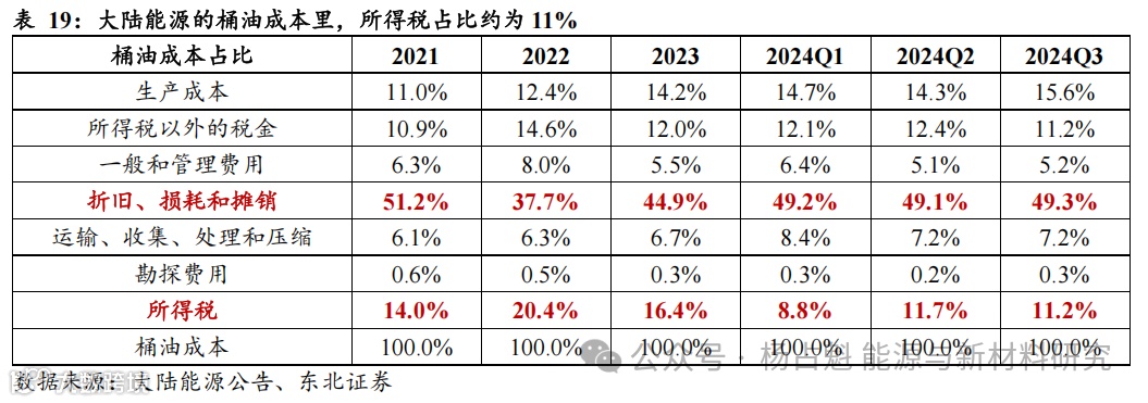2.1. 桶油成本:接近40美金,所得税占比约10%