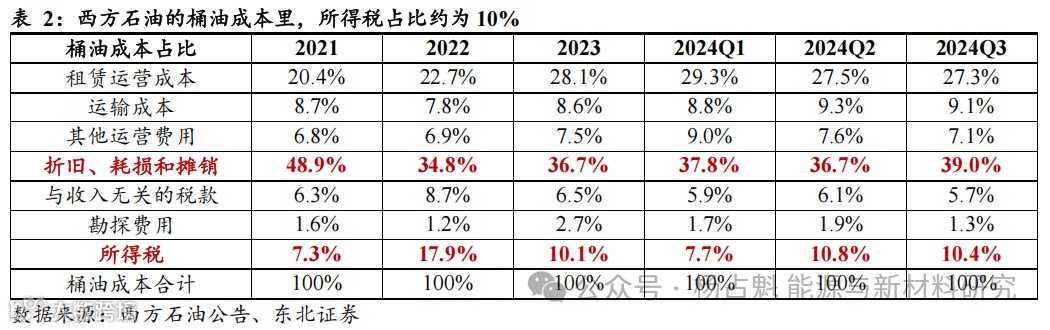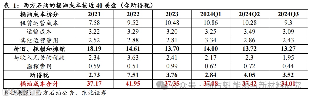 西方石油的含税桶油成本接近40美金,所得税占比约10%。