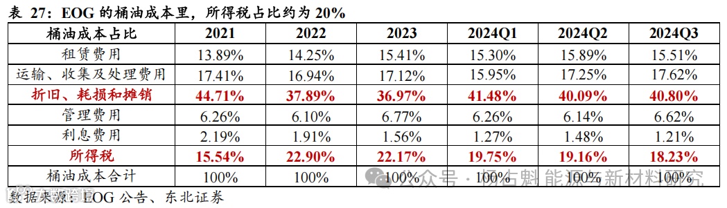 EOG的含税桶油成本接近30美金,所得税占比约20%。