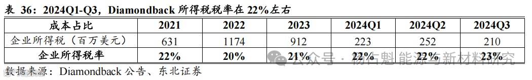 Diamondback主要在北美地区开展业务,所得税率在22%左右,基本等于美国法定税率21%。
