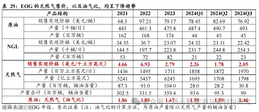 我们根据EOG披露的财务报表,对EOG的产品结构做了以下拆分(详情见表29),我们发现。