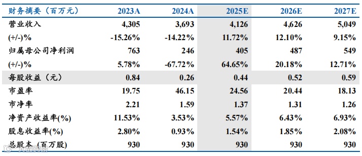 我们预计公司2025-2027年实现归母净利润为4.05/4.87/5.49亿元,对应PE为24.56X/20.44X/18.13X,首次覆盖,予以“买入”评级。