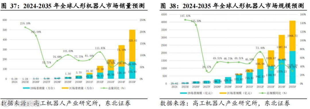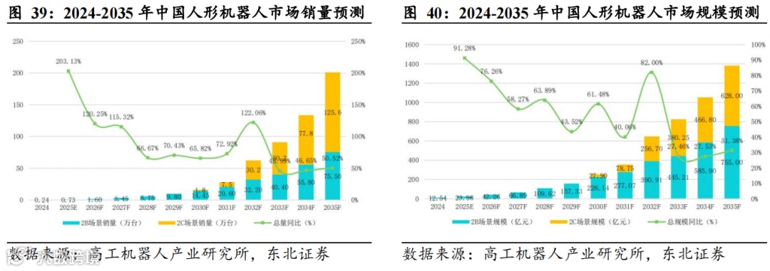 人形机器人领域带来的改性塑料需求增量有望达30万吨。据GGII预测,2025年全球人形机器人市场销量有望达到1.24万台,市场规模63.39亿元,到2030年全球人形机器人市场销量将接近34万台,市场规模将超过640亿元,到2035年,全球人形机器人市场销量将超过500万台,市场规模将超过4000亿元。国内而言,据GGII预测,预计2025年有望成为人形机器人真正落地的“元年”,人形机器人将率先在多个2B下游结构化场景实现落地应用,预计到2030年,面向2C场景的人形机器人有望迎来落地,参考中国新能源汽车的发展历程,预计2031年,人形机器人进入快速起量期,到2035年销量有望达到200万台左右,届时中国人形机器人市场规模有望接近1400亿元。据证券之星数据,若以人形机器人平均单台50千克重量、30%改性材料占比计算,当产量突破2000万台时,相关改性材料需求有望达30万吨。