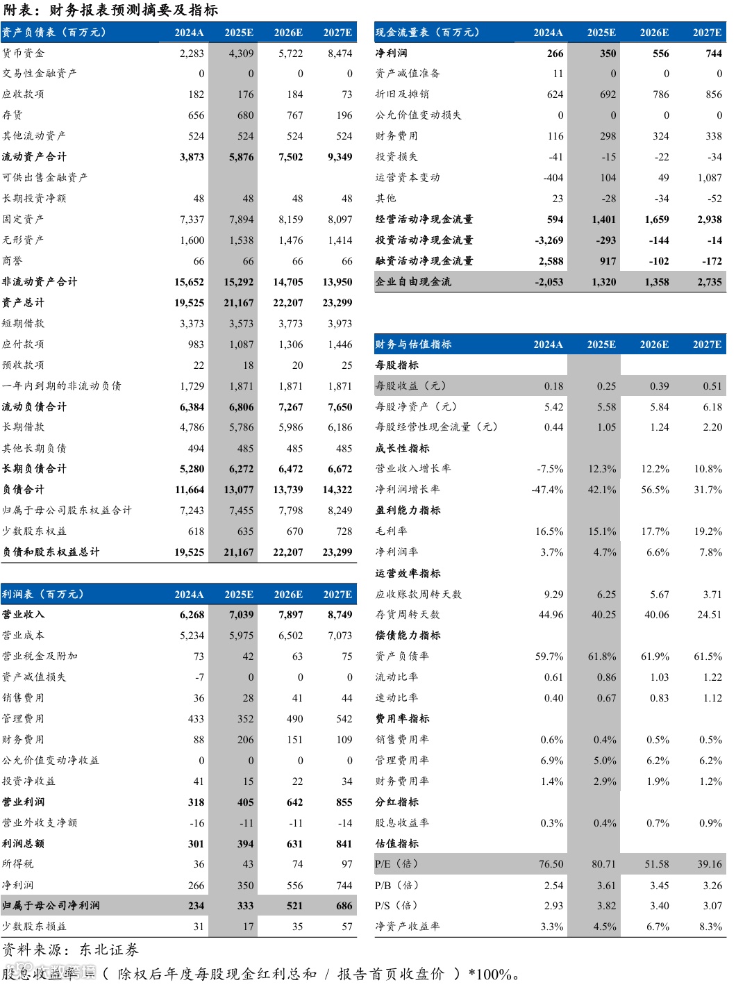 考虑到新产品进入放量期,在建项目稳步推进,我们预计2025-2027年公司实现归母净利润3.33/5.21/6.86亿元,对应PE为80.71X/51.58X/39.16X,维持“买入”评级。
